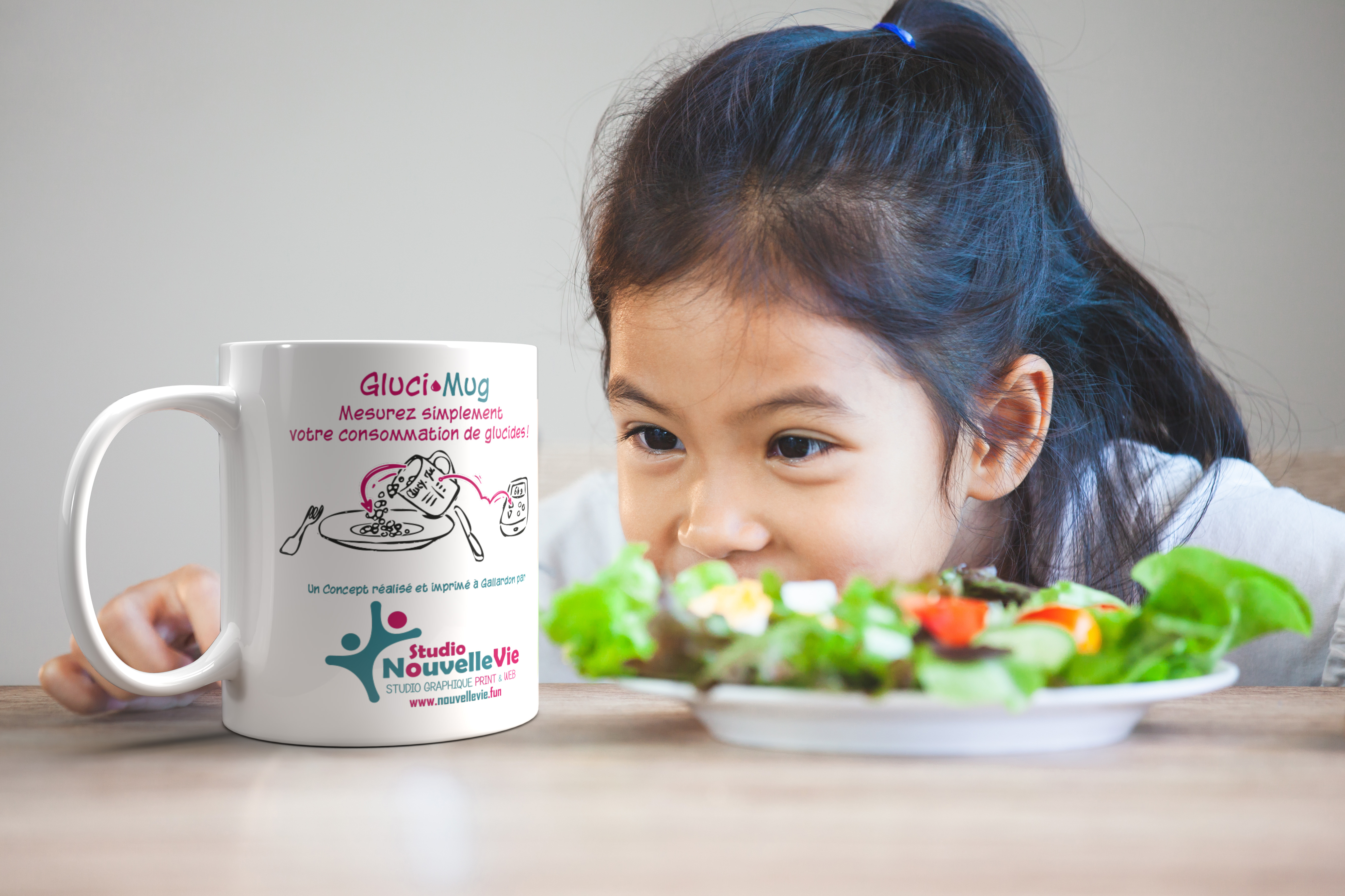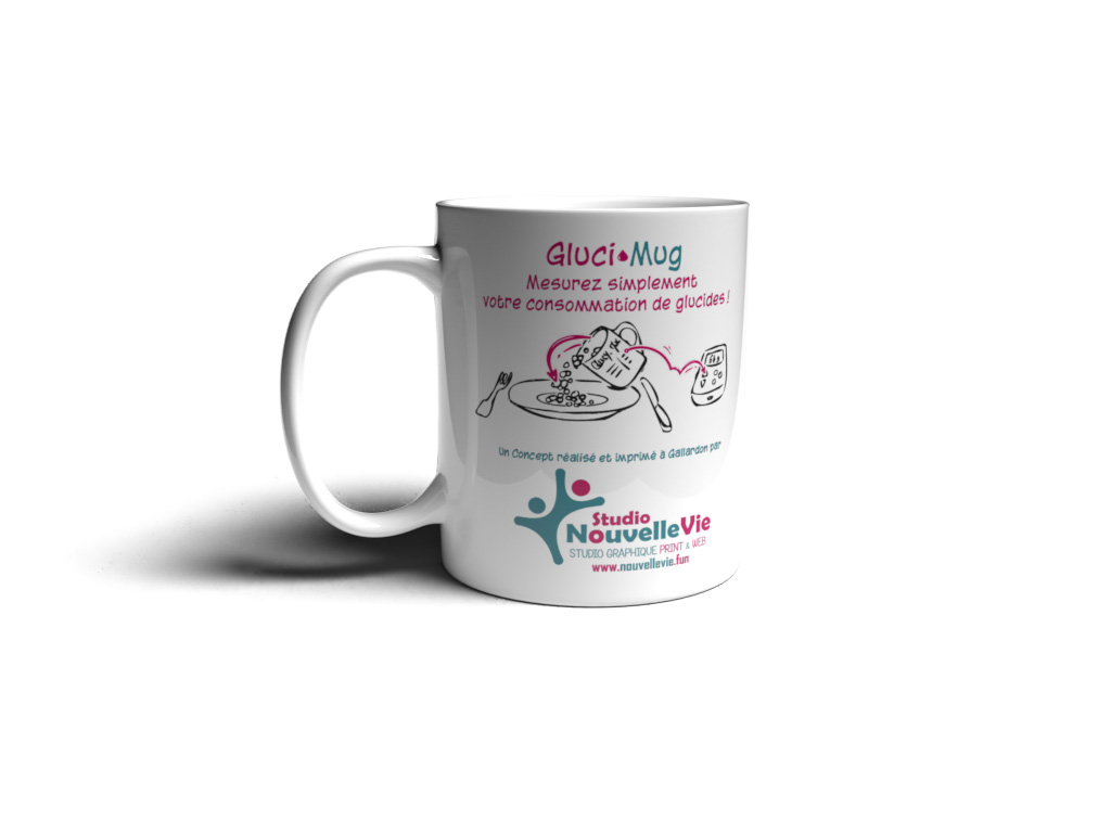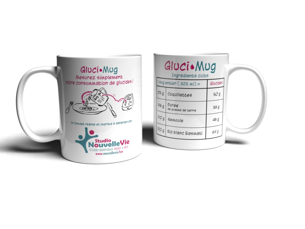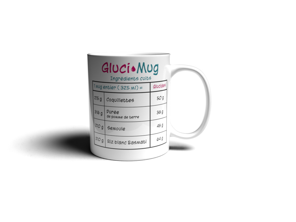 GLUCIMUG est un mug doseur conçu pour faciliter l’estimation des glucides dans les aliments cuits. Grâce à un tableau de correspondance imprimé sur le mug, il suffit de remplir le récipient pour connaître rapidement la quantité de glucides. Plus besoin de balance ni de calcul compliqué. Comment ça marche ? 1️⃣ Remplissez Remplissez le mug avec l’aliment cuit (pâtes, riz, semoule, purée). 2️⃣ Lisez Le tableau sur le mug indique la quantité de glucides correspondant au volume. 3️⃣ Calculez Entrez cette valeur dans votre pompe à insuline ou votre calculateur. 4️⃣ Mangez Profitez de votre repas plus sereinement. Pourquoi utiliser GLUCIMUG ? ✅ estimation rapide des glucides ✅ pas besoin de balance ✅ simple à utiliser ✅ pratique à la maison ou en déplacement ✅ conçu par une personne diabétique Un produit pensé par une patiente GLUCIMUG est né d’une expérience personnelle. Sandrine, diabétique de type 1 depuis plus de 20 ans, a voulu créer un objet simple pour faciliter le calcul des glucides au quotidien. Parce que vivre avec le diabète demande déjà beaucoup d’efforts. Caractéristiques contenance : environ 325 ml matériau : céramique alimentaire marquage durable lavable au lave-vaisselle utilisation simple et rapide